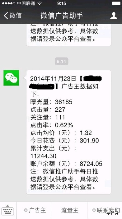 只是现在微信整体做广告的成本就比以前高非常多了,但不管在什么样的环境下,总还是有人能做到极致,做到一个比较合适的成本。比如你能找到很少做广告的质量账号,然后能说服对方带号,用一种比较吸引眼球的带号方式,从别人那里获取大量的粉丝。